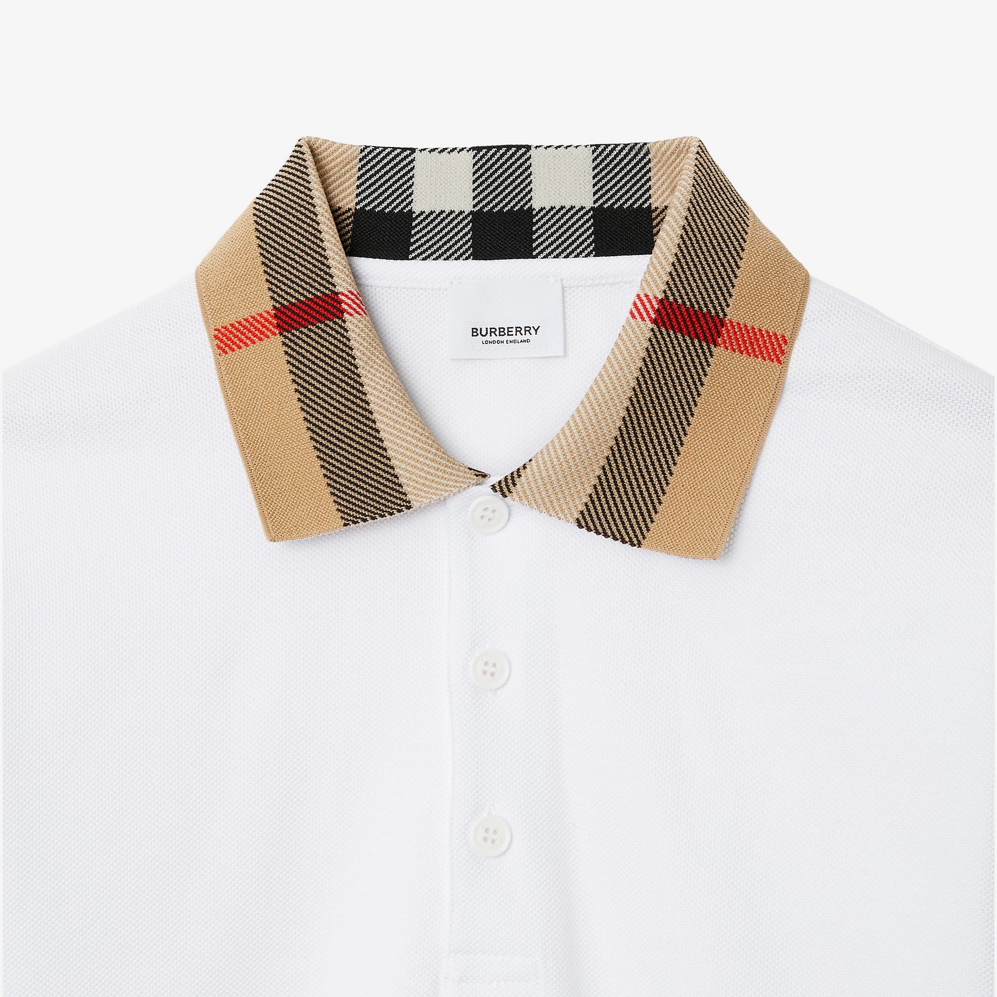 Check Collar Cotton White Polo Shirt